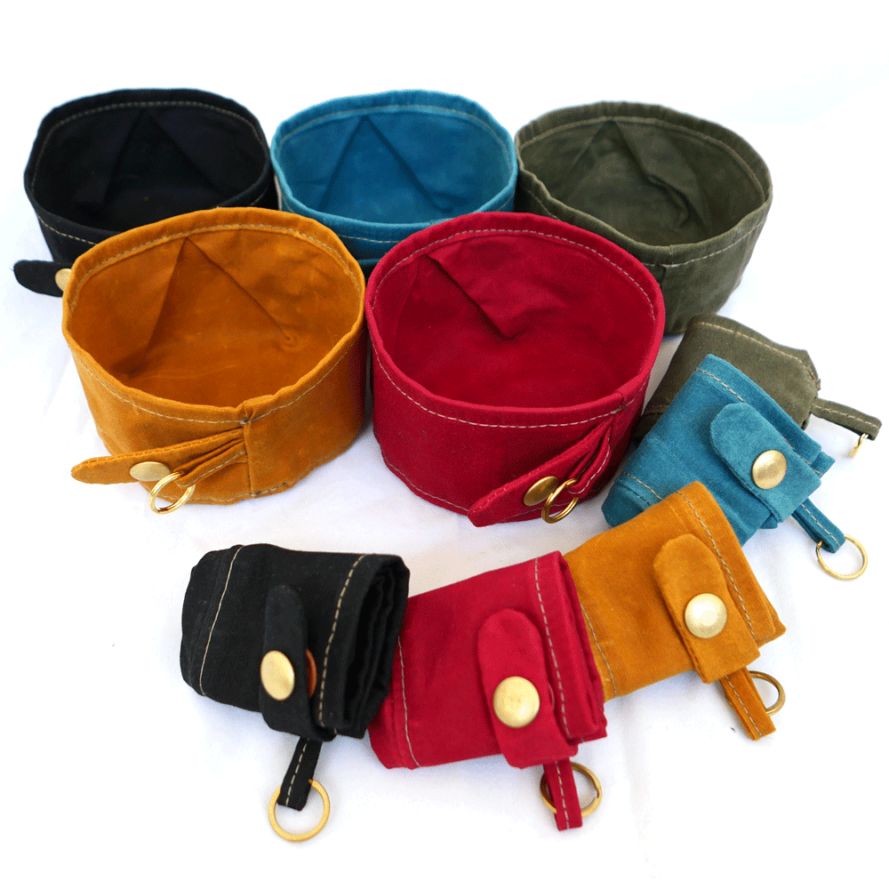 A light weight roll up bowl for your dog that securely holds water ~500ml.