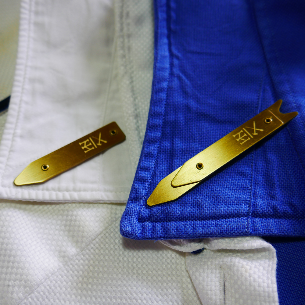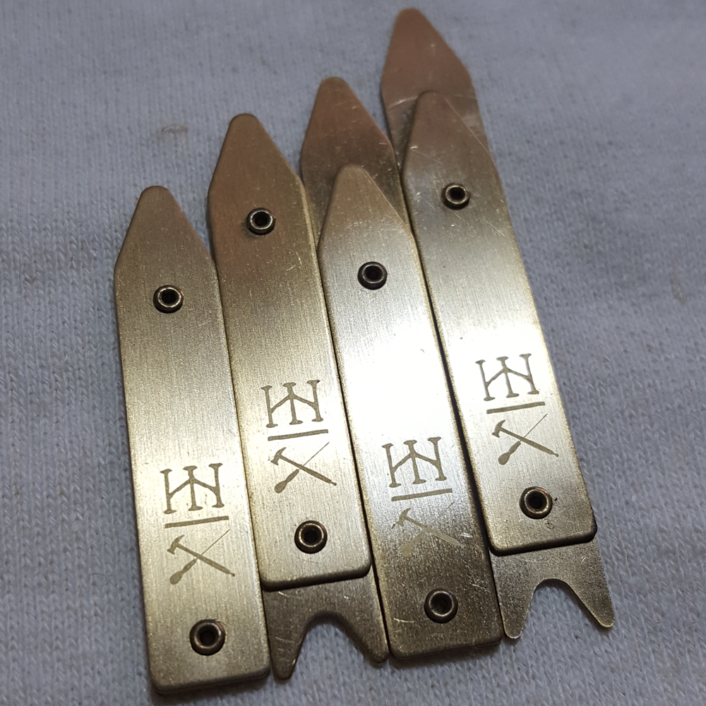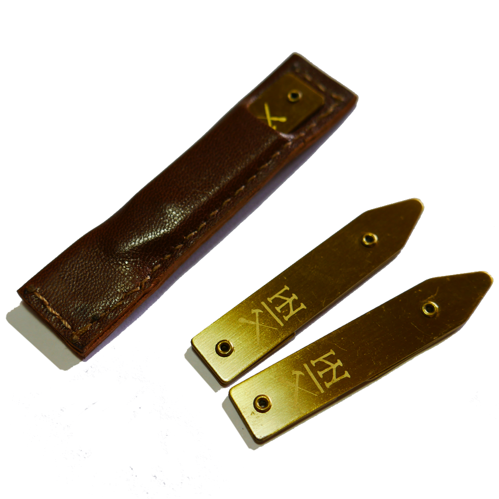 Brass collar stays, 1 pair adjustable to 4 lengths, in a handy leather pocket.