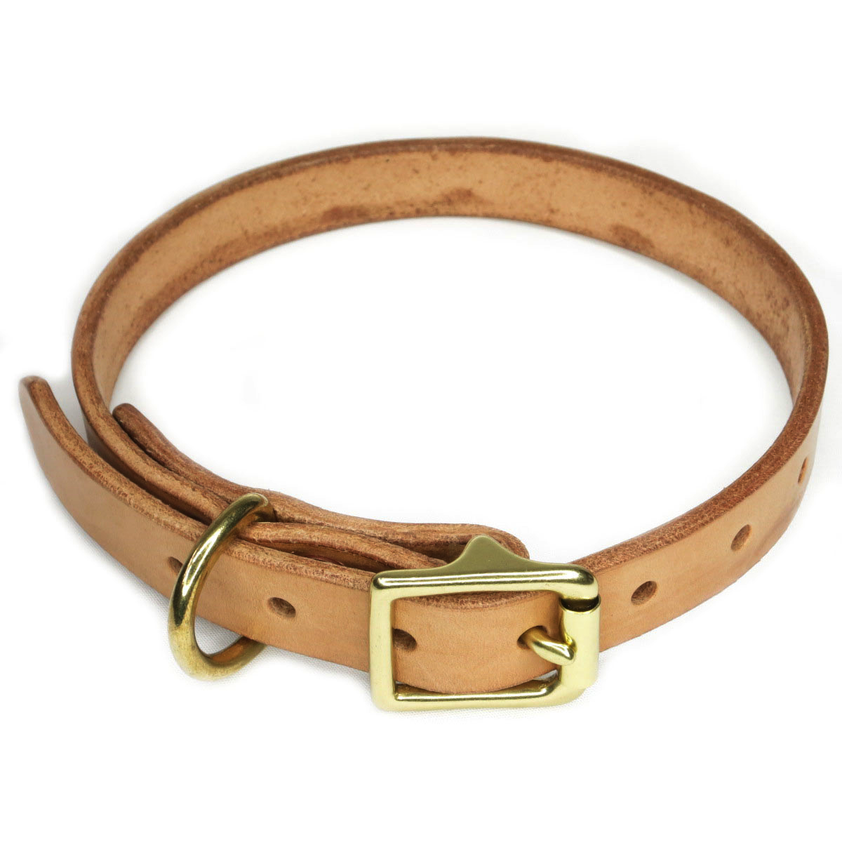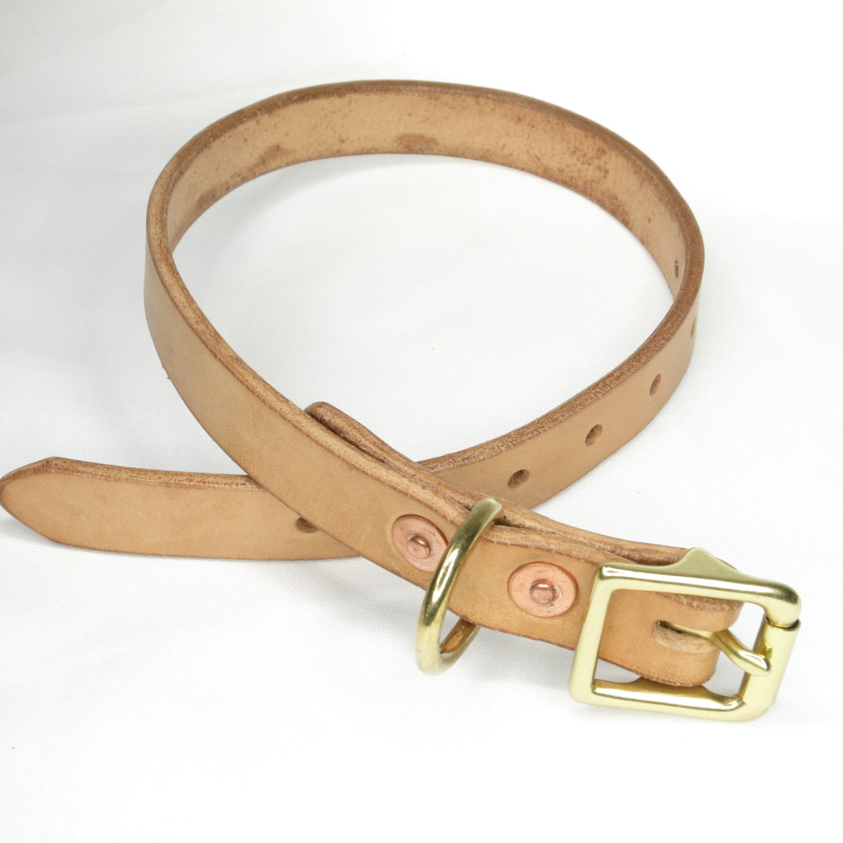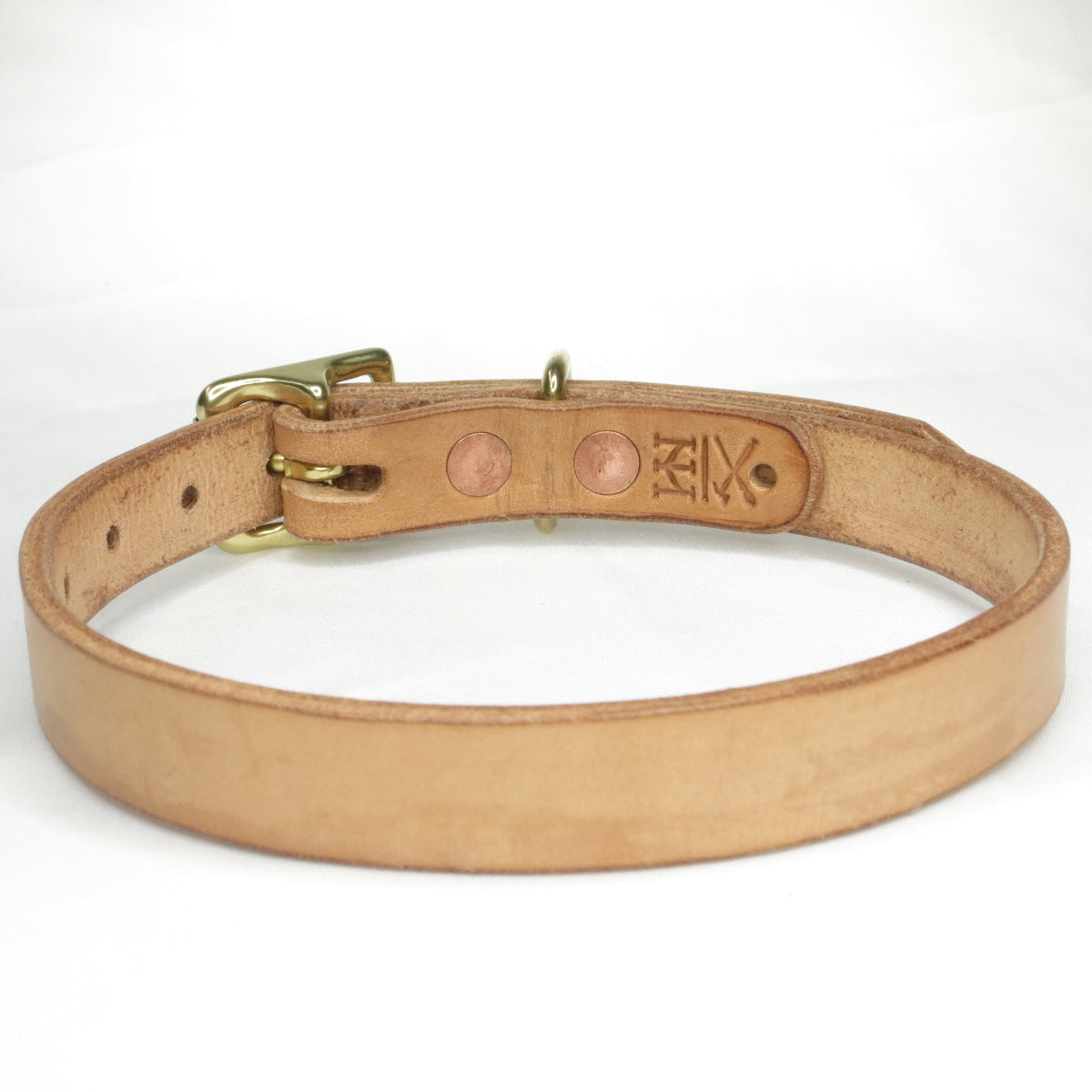 20mm wide with smooth rounded edges that have been hand-burnished. Brass D-ring for connecting leash and a hidden hole for adding name or contact tags.