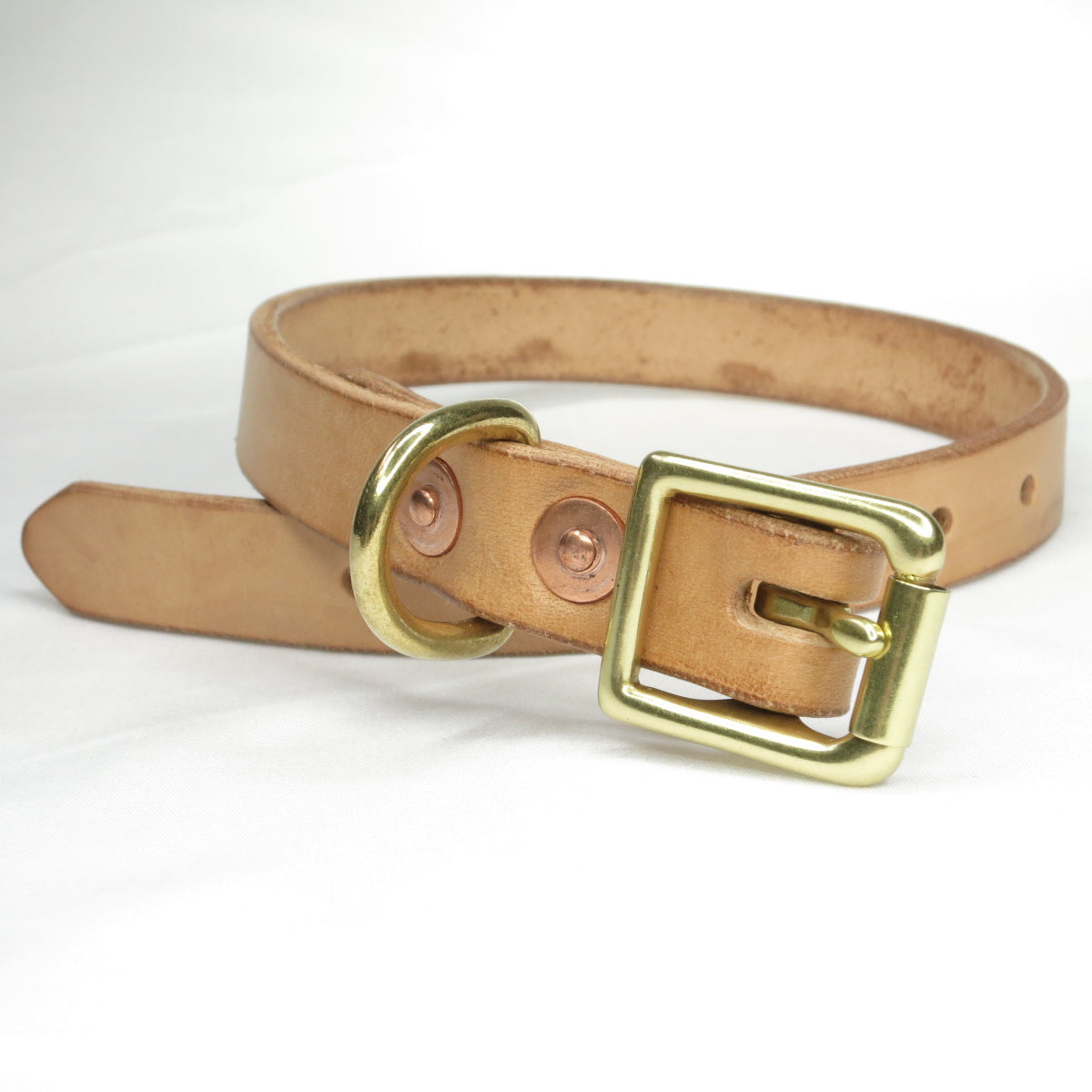 Full Grain Leather dog collar, solid brass hardware, secured with solid copper hand-beaten rivets.