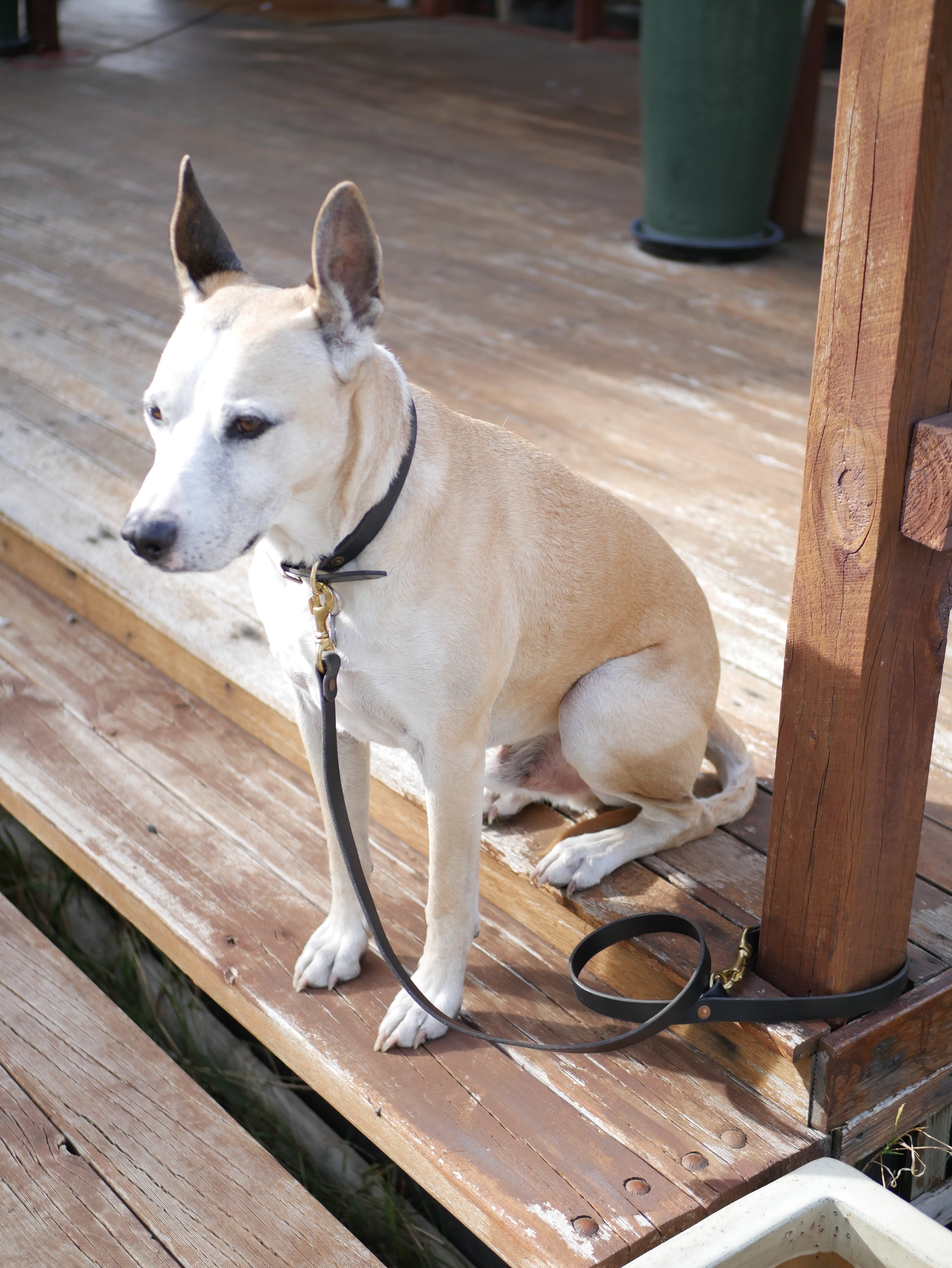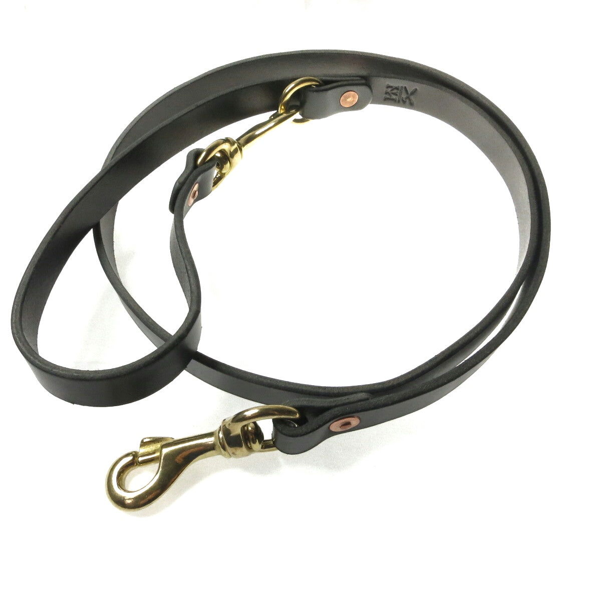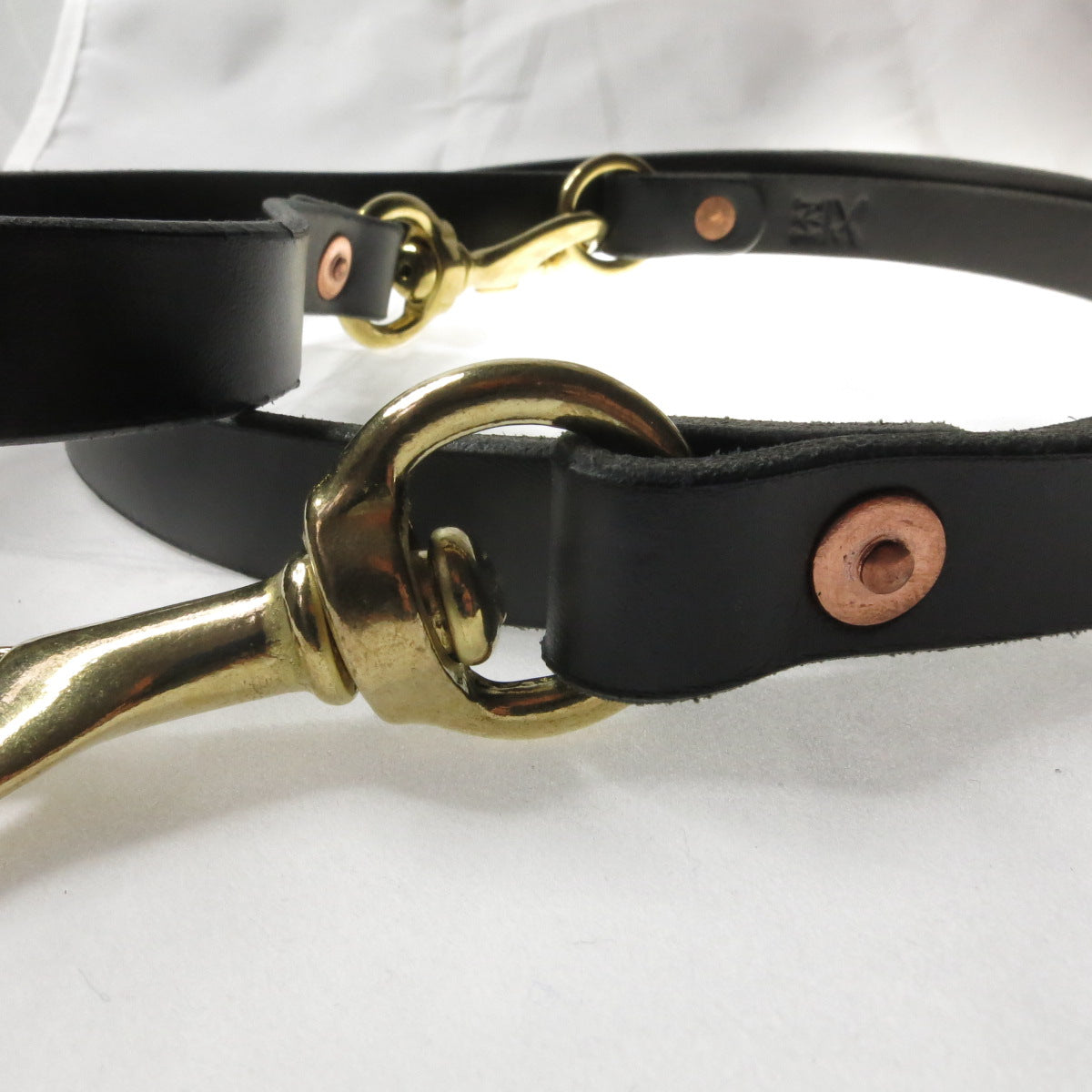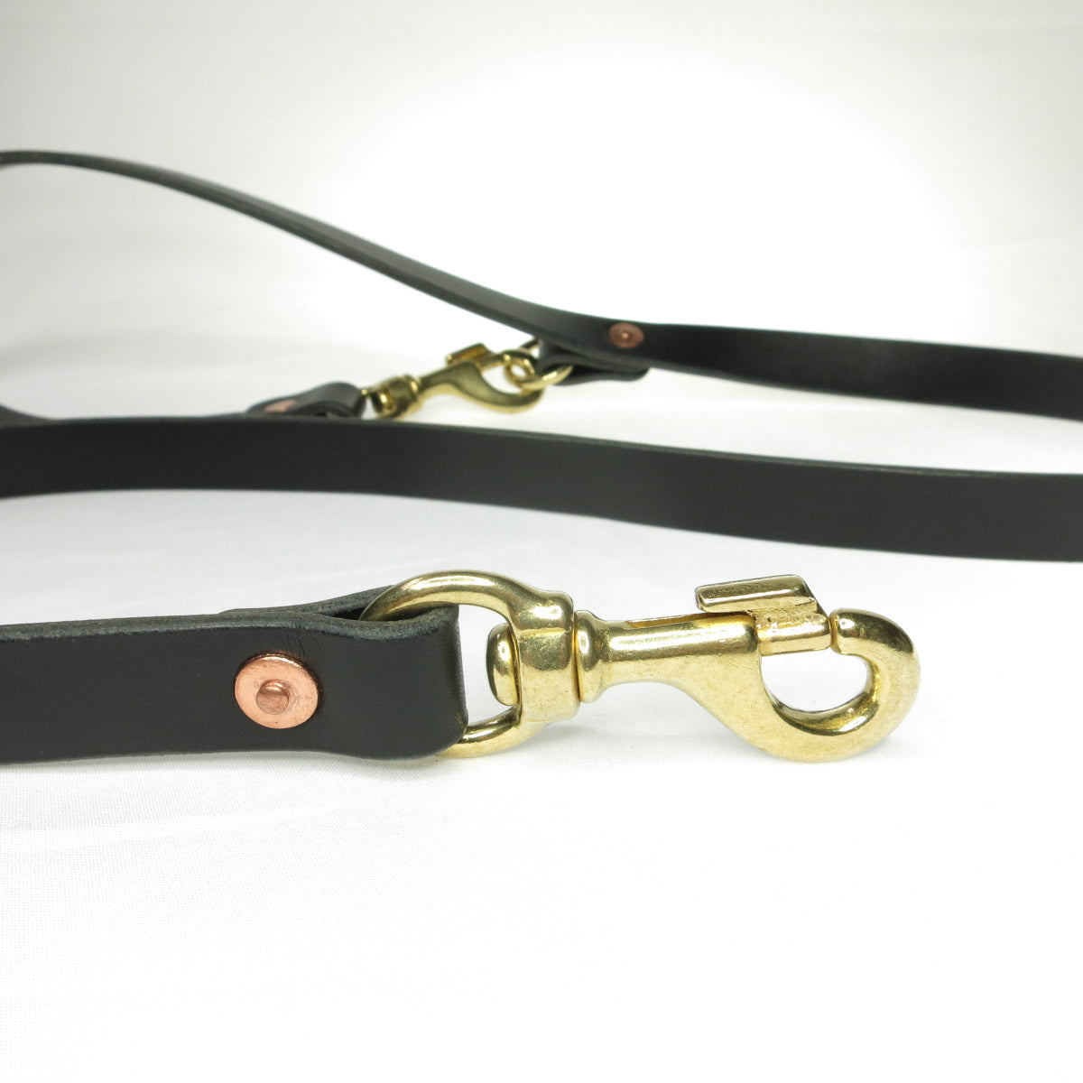 Full Grain Leather dog leash, solid brass hardware and secured with solid copper hand-beaten rivets.