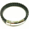 There closure slides to the sides and has a removable section for dual sizing Medium and Large.