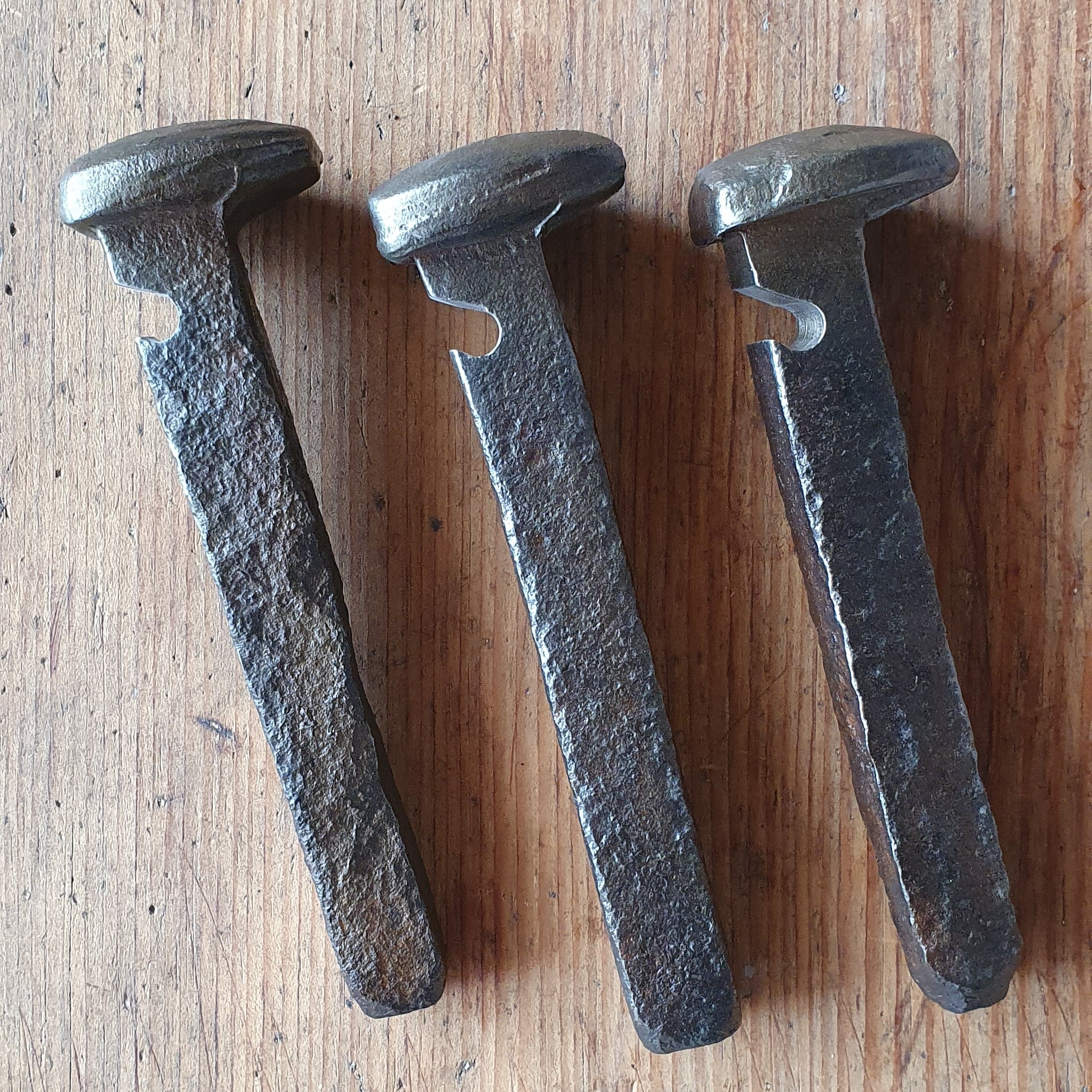 Rustic recovered railway spikes crafted into a heavy duty bottle opener.