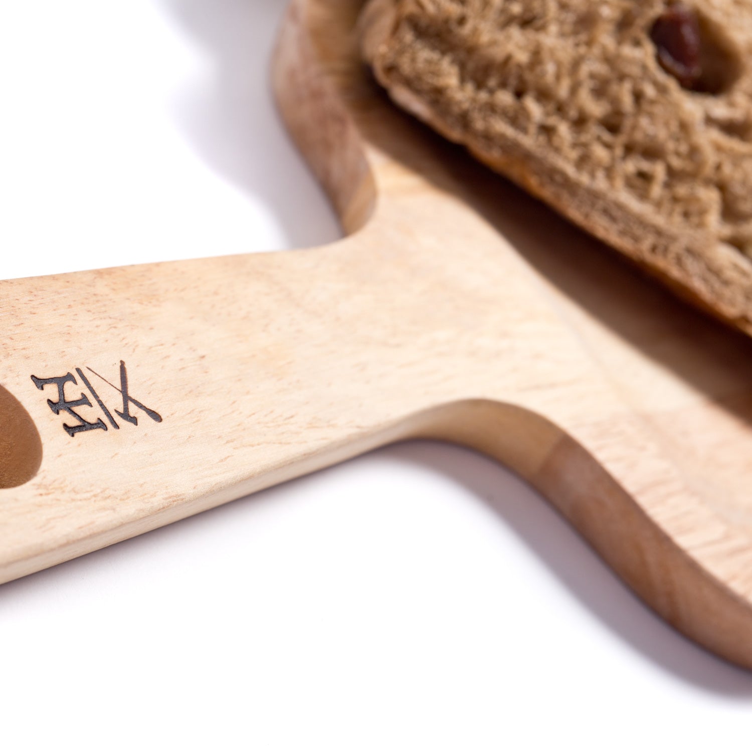 Oak with a hanging hole and comfortable handle for serving use. Some variations in color should be expected relating to the nature of the timber.